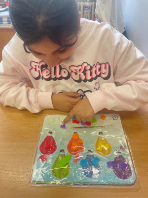 Žáci si se zalíbením vybírají nové pomůcky k výuce i relaxaci. Díky těmto inovativním pomůckám dochází u žáků i se závažnějším znevýhodněním k celkovému zklidnění, uvolnění a motivaci k aktivnímu vnímání.