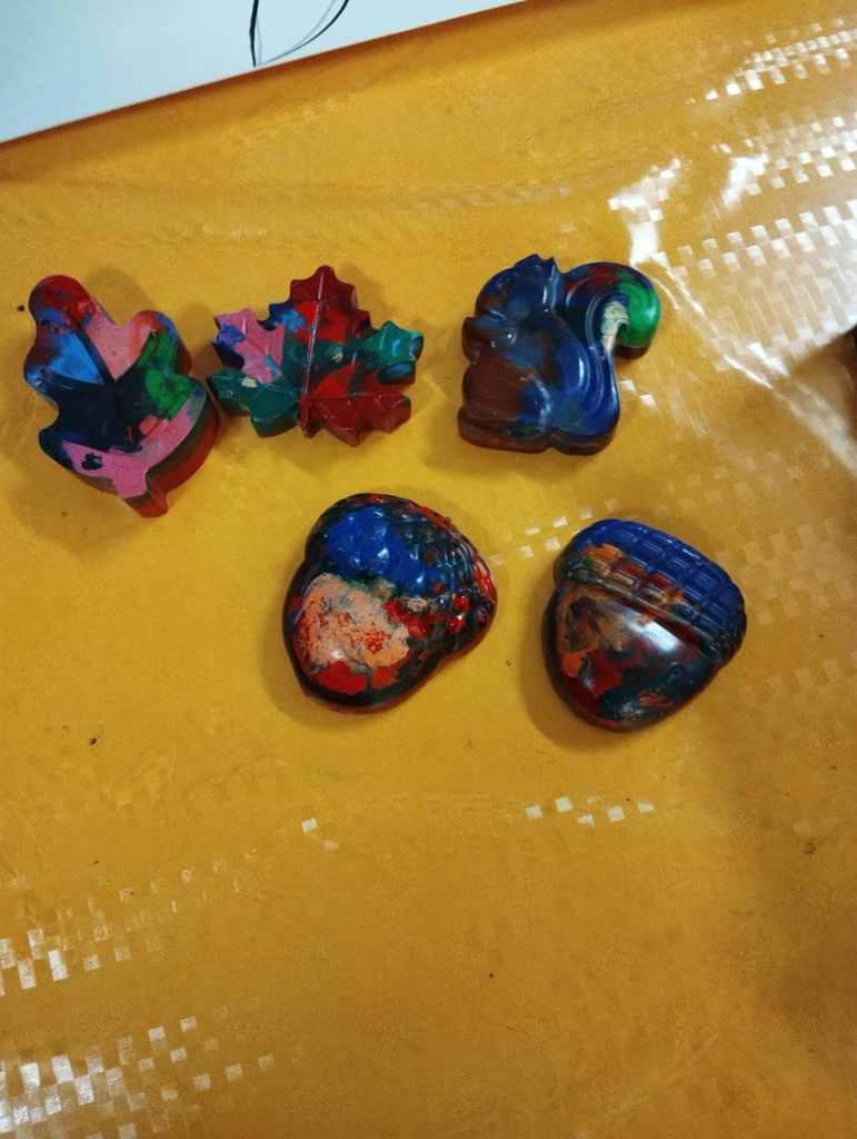 Výsledkem byly originální pastelky různých tvarů a barevných kombinací v podzimním tématu. Pastelky děti využily při dalších výtvarných aktivitách. Děti byly nadšené, že si mohly vyrobit vlastní pastelky a zároveň se naučily něco o udržitelnosti. Daly nový život starým pastelkám.