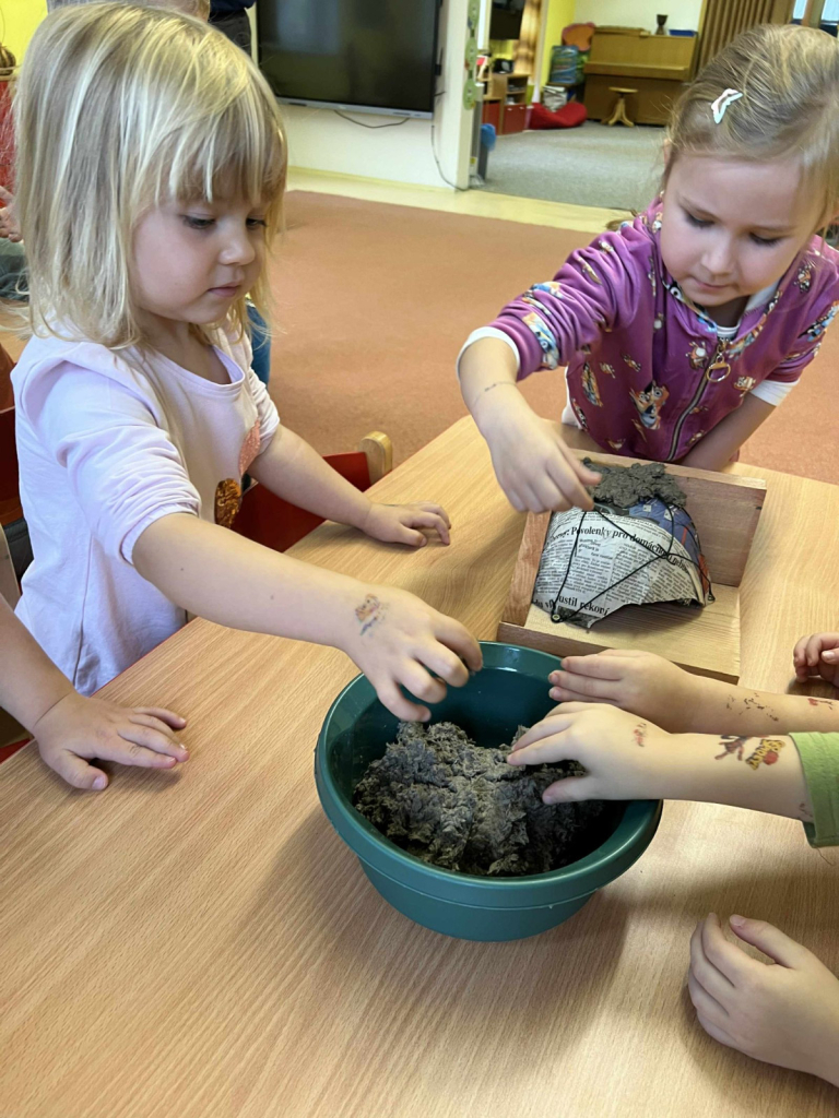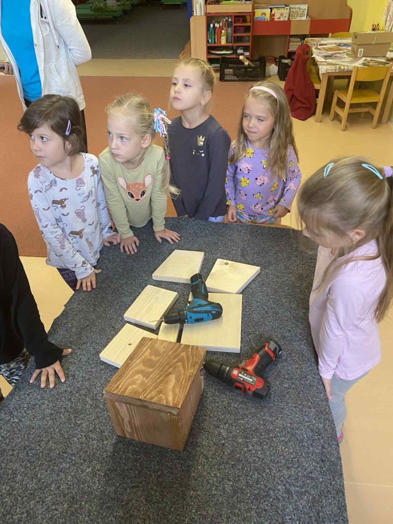 Podzimní dny byly obohaceny o návštěvu ornitologa Bc. Kondziolky, aby dětem přiblížil fascinující svět ptáků. Dětem poutavě vyprávěl o životě ptáků a děti měly možnost dozvědět se mnoho nových a zajímavých informací. Například jak se jednotlivé druhy jmenují, jak vypadají, čím se ptáci živí, kde žijí a jak se o ně lidé mohou starat. Velkým překvapením byla živá ukázka malých kuřátek, která si děti mohly nejen prohlédnout, ale také pohladit. Mnoho z dětí drželo kuřátko v ruce úplně poprvé, jejich hebká peříčka a tiché pípání vytvořily nezapomenutelnou atmosféru. Byl to opravdu veliký zážitek. Po prohlídce kuřátek se děti pustily do tvoření. Mladší děti vytvořily skupinky, ve které modelovaly hnízda pro jiřičky z rozmočeného papíru, který se podobal opravdové hlíně. Předškoláci se s chutí pustili do práce se skutečným nářadím pod pečlivým dohledem paní učitelky. Vrtaly aku vrtačkou kusy dřeva a zatloukaly hřebíky s velkou pečlivostí a radostí, aby vytvořily ptačí budky pro různé druhy ptáků. Budky se dětem velmi povedly a už se těší, jak je budou instalovat na zahradě MŠ. Malé kutily ještě čeká další část práce – natírání budek barvami, aby byly odolné proti počasí.