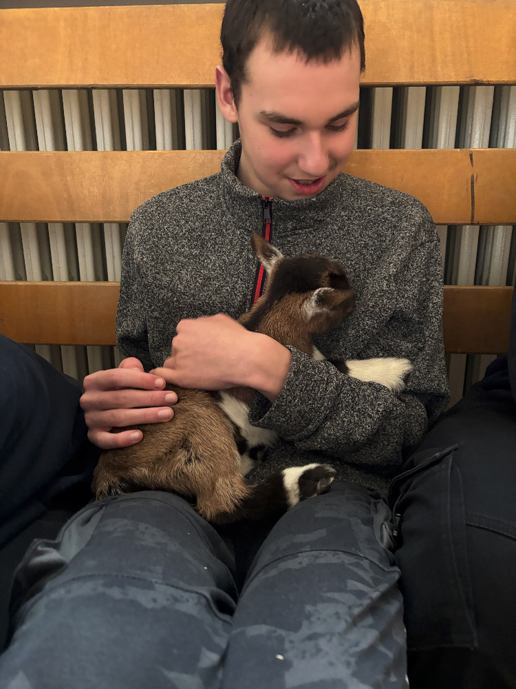 Dnešní canisterapie byla výjimečná svou rozmanitostí. Žáci se setkali s holandskou zakrslou kozou – maminkou i jejím mládětem, které bylo staré pouhý jeden týden. Tichý respekt s jakým děti ke zvířatům přistupovaly, byl sám o sobě důkazem, jak silný účinek může mít živý kontakt s přírodou. Mezi další terapeuty patřilo sedm hebkých králíčků, jako plyšáci, kteří si okamžitě získali srdce všech přítomných. Žáci si mohli zvířata pohladit, pozorovat jejich chování a vnímat jejich klidnou energii.
