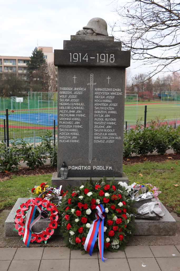 Dnes, 11. listopadu, v 11 hodin uctili zástupci města a příspěvkových organizací společně s občany válečné veterány a všechny bojovníky za svobodu. Českou hymnu zazpíval Pěvecký sbor ARTEP. Kladení věnců doprovodil trubač Václav Švidrnoch. Čestnou stráž u pomníku drželi vojáci z Krajského vojenského velitelství Ostrava.