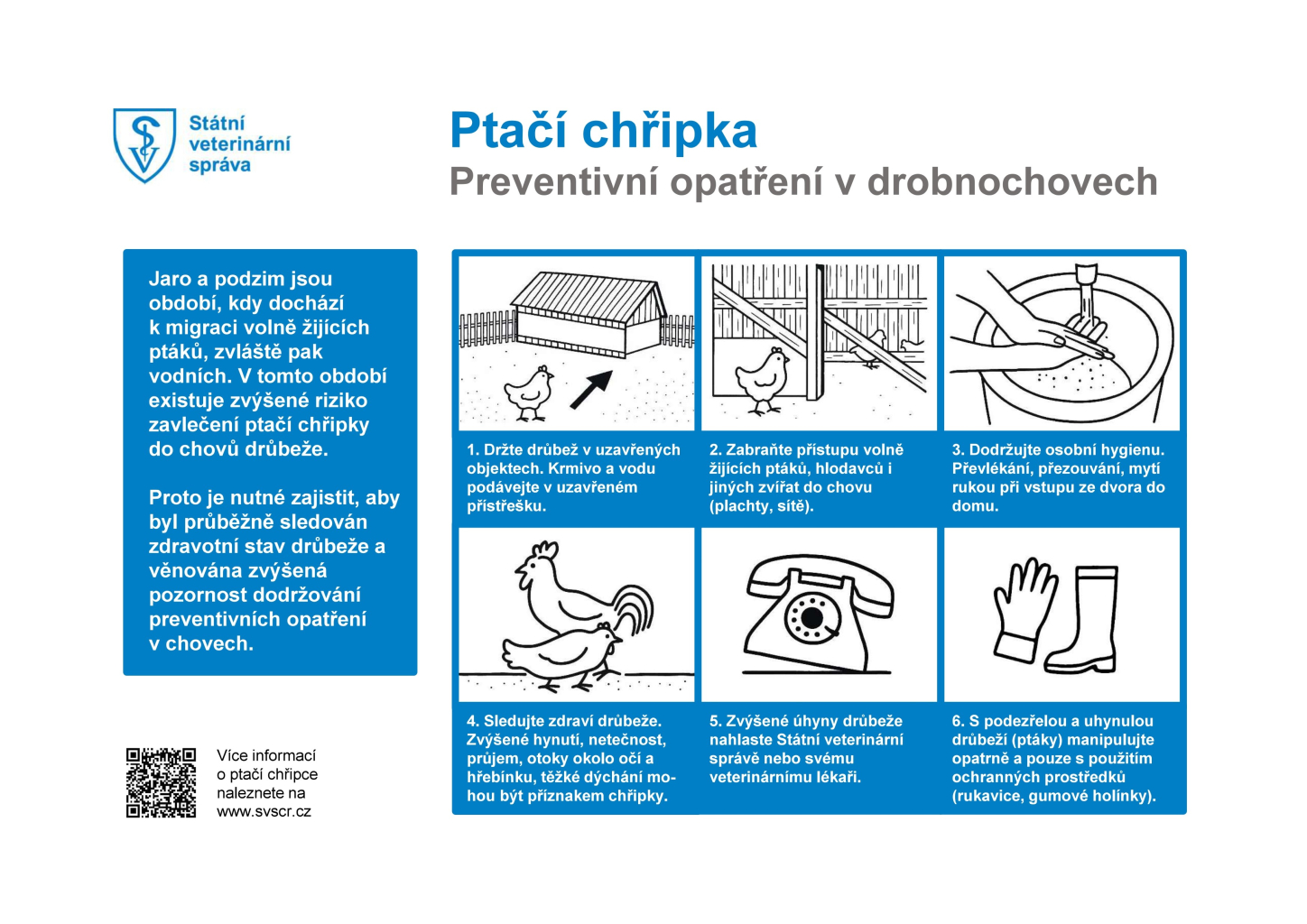 Informační leták Státní veterinární správy pro drobné chovatele o preventivních opatřeních proti ptačí chřipce najdete v příloze pod článkem.