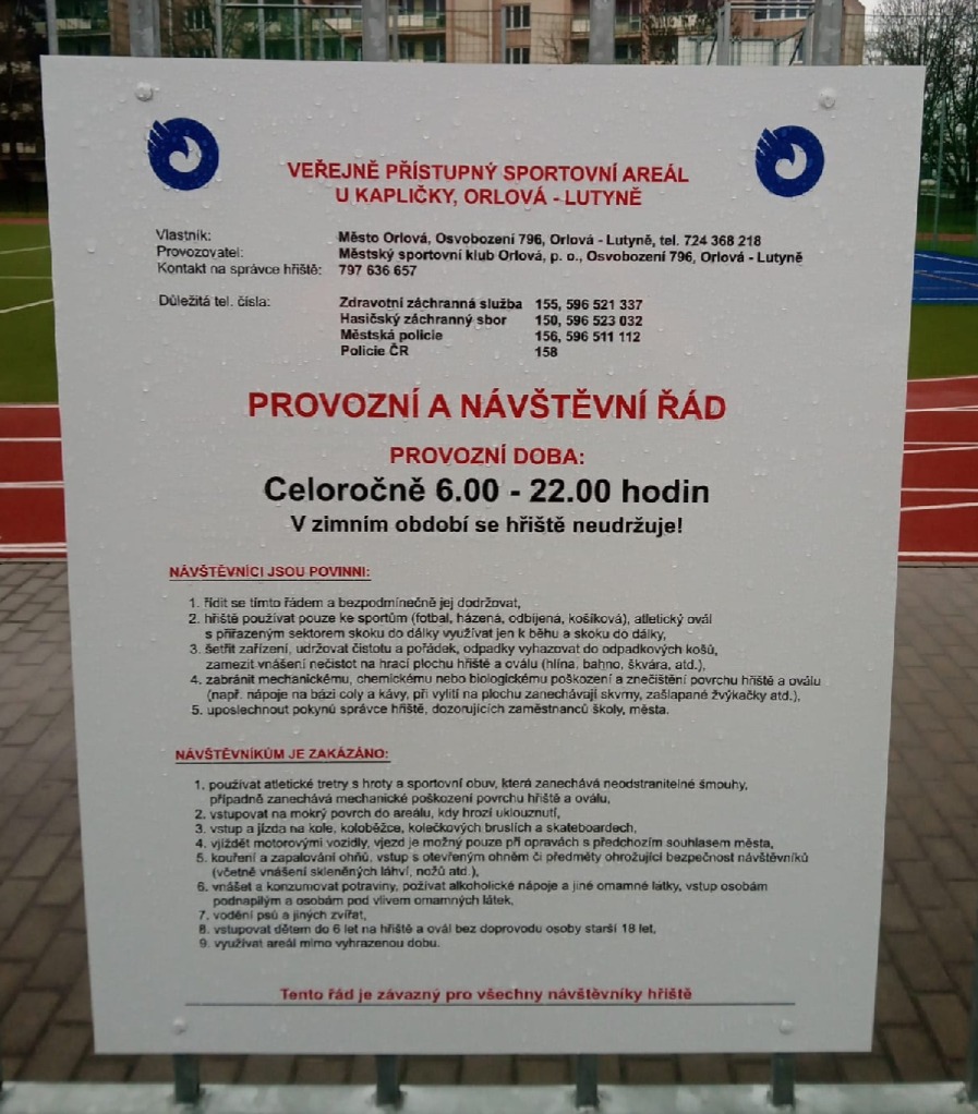 - používat pouze ke sportům (fotbal, házená, odbíjená, košíková), atletický ovál s přiřazeným sektorem skoku do dálky využívat jen k běhu a skoku do dálky