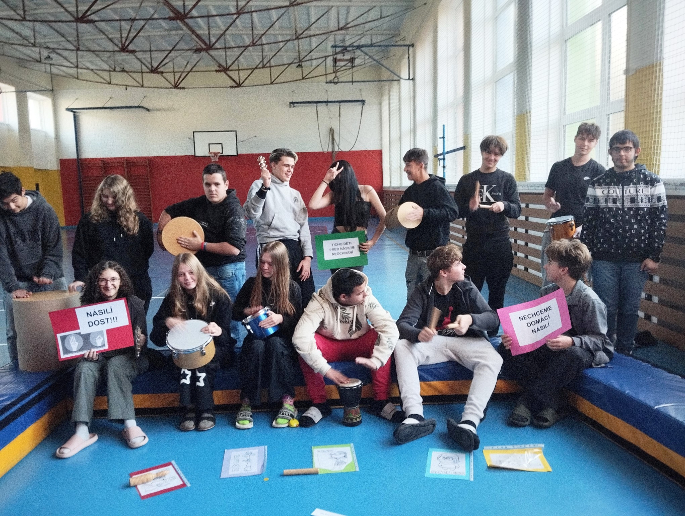 Bubnovačka byla na naší škole realizována jako součást projektu Zaměřeno na vztahy ve škole i na síti, který spadá do dotačního programu Moravskoslezského kraje Podpora aktivit v oblasti prevence rizikového chování 2025. Škola zajistila na akci vlastní spoluúčast, protože financování z projektu je určeno především na zajištění preventivních programů vedených externími lektory. Na prvním stupni si jednotlivé třídní kolektivy zabubnovaly společně se svými učiteli přímo v hodinách. Děti tak jednoduchým, ale silným způsobem vyjádřily jasný postoj: Násilí je špatné a nesmí být přehlíženo. Žáci druhého stupně se kromě samotného bubnování zúčastnili také hodinových preventivních programů zaměřených na téma domácího násilí a na podporu vzájemné všímavosti a empatie.