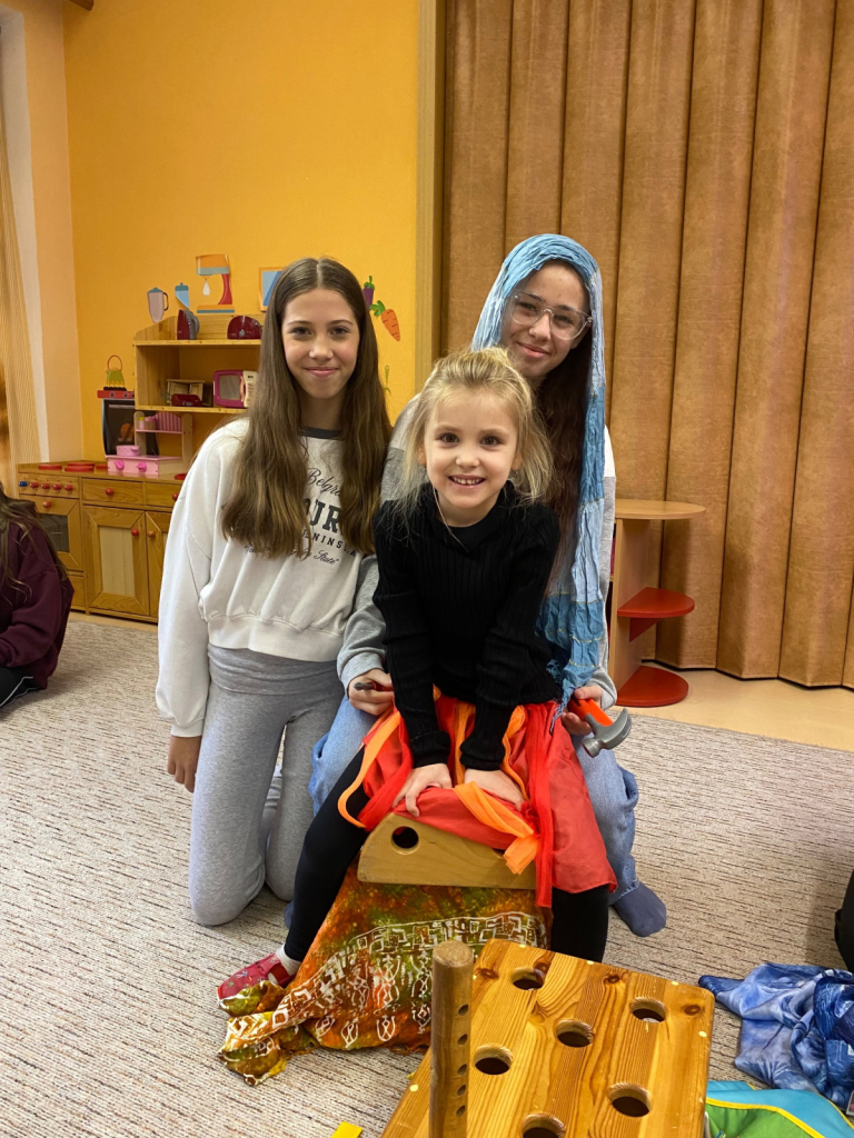 Ne všechny děti však měly tvořivou náladu. Ty, které se do tvoření zapojit nechtěly, pozvaly starší žáky do společné hry. Společně stavěli z kostek, hráli si v kuchyňce nebo vytvářeli vlastní herní scénáře. Vznikaly tak svěží, spontánní situace, které dokazují, jak přirozeně se děti navzájem propojují bez rozdílu věku.