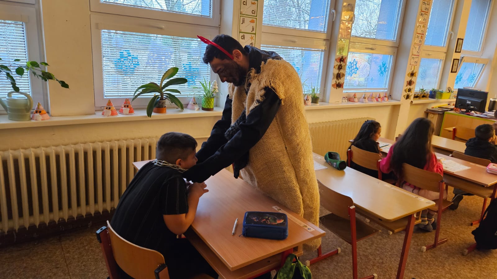 V pátek 5. prosince 2025 již tradičně obcházel naši školu Mikuláš s čerty a anděly. Děti na 1. stupni se na jejich příchod opět patřičně připravily.