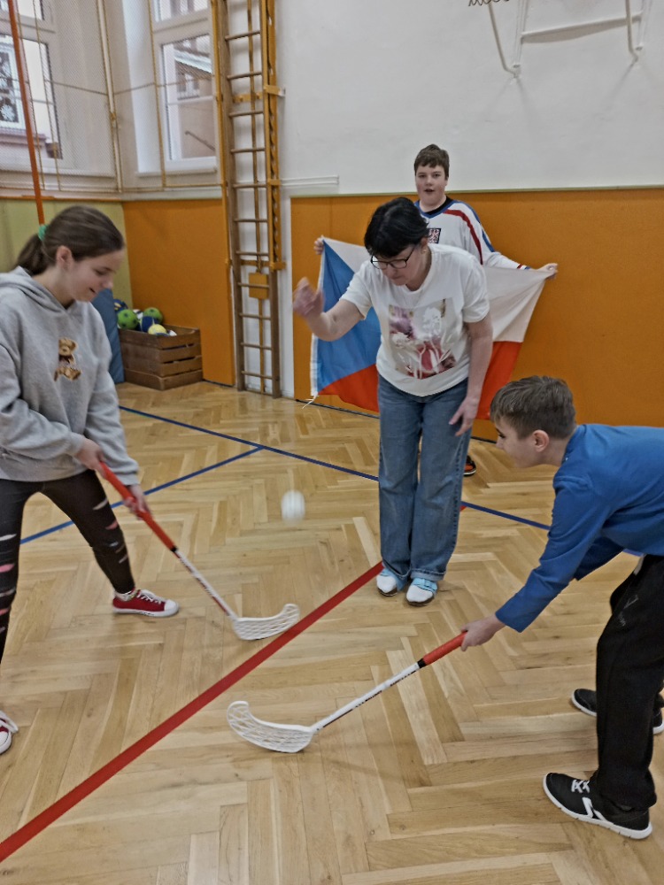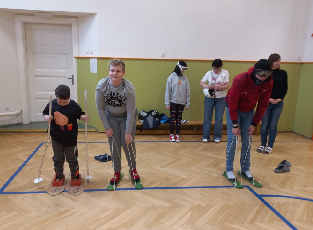 Ve čtvrtek 5.2. jsme si v tělocvičně školy uspořádali Zimní olympijské hry. Děti si vyzkoušely lyže z kartónu a chůzi na dřevěných lyžích - chůdách. Další disciplínou bylo rychlobruslení a slalom na bobech. Také jsme si zahráli menší hokejové utkání v dresech, které přinesla p. asistentka Petra K.