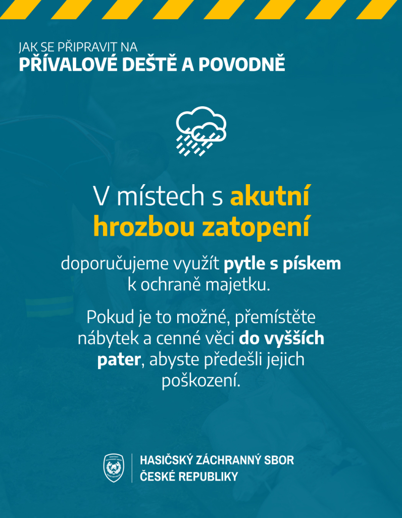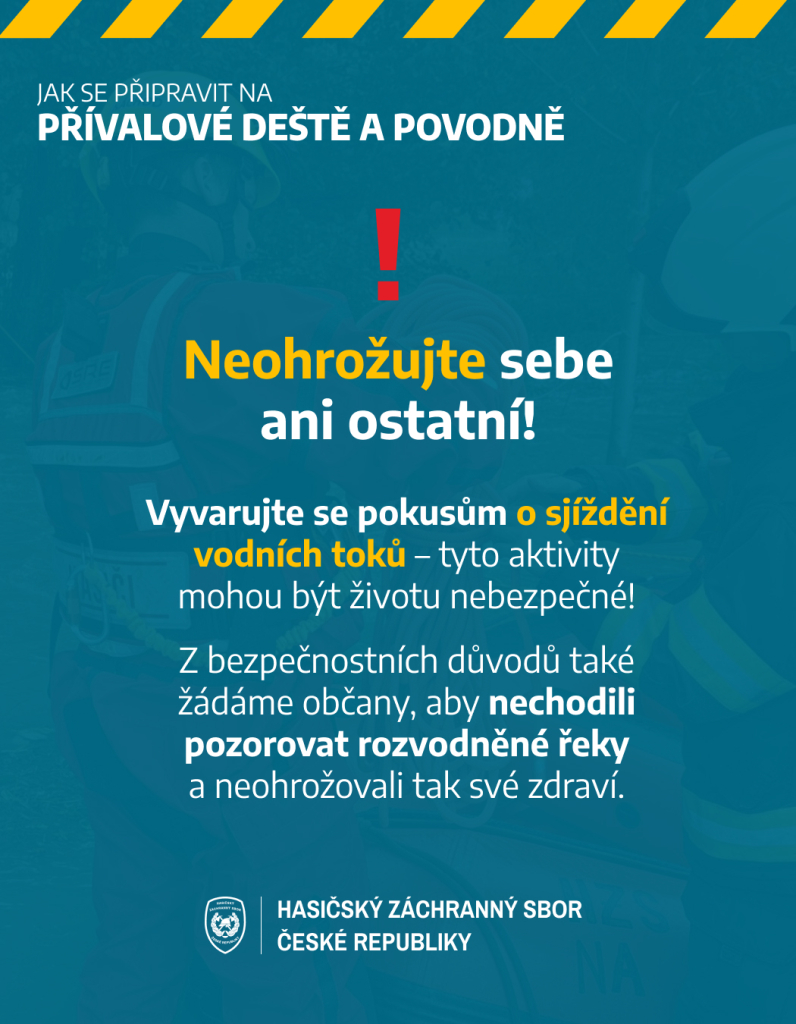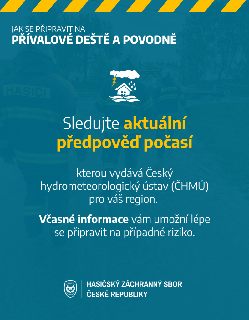 Přesto je dobré připomenout si základní pravidla pro případ, že by se situace zhoršila. Hasičský záchranný sbor České republiky vyrobil několik informačních letáčků (v příloze), které vám pomůžou zorientovat se v nenadálých situacích.