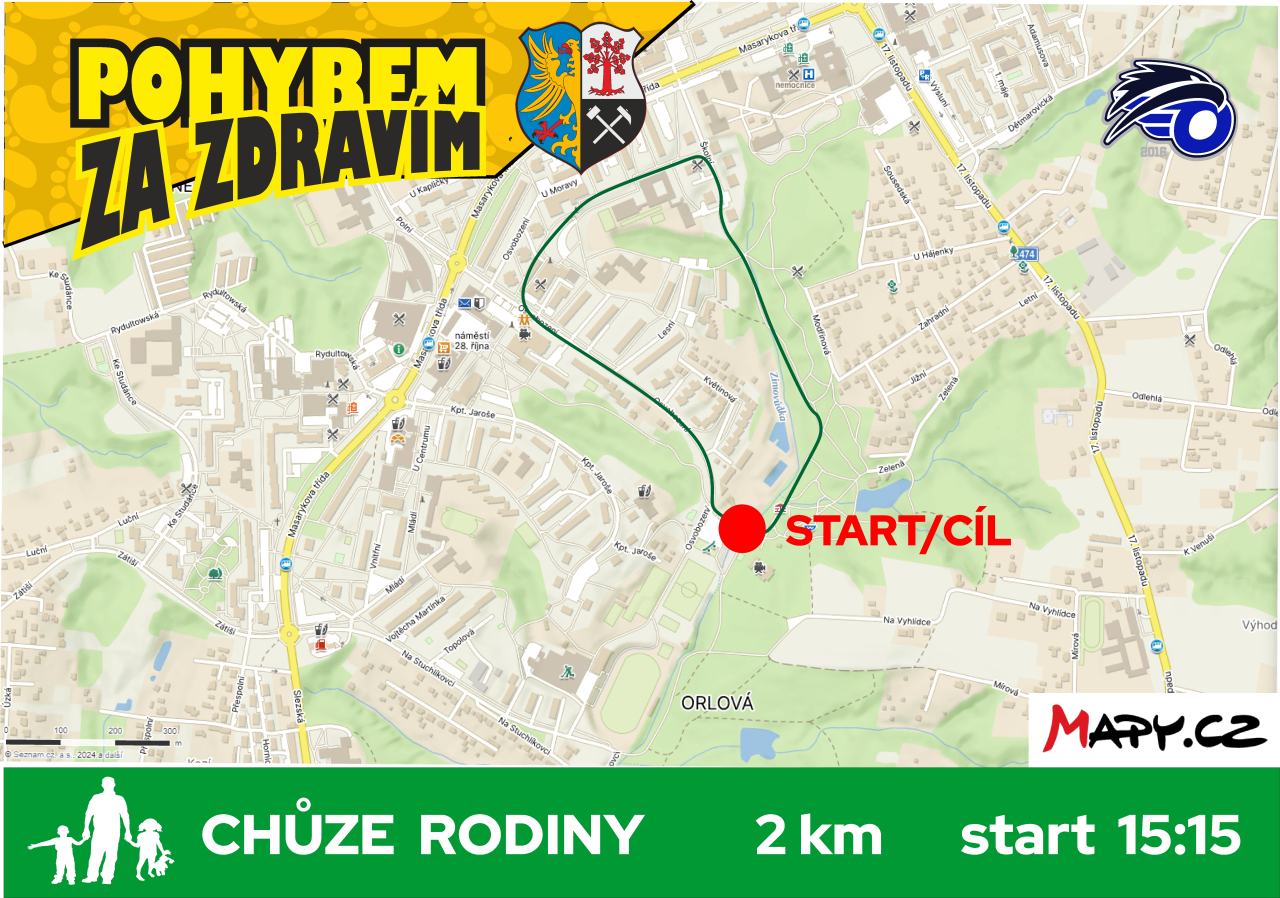 - 15:15 start (chůze 2 km)