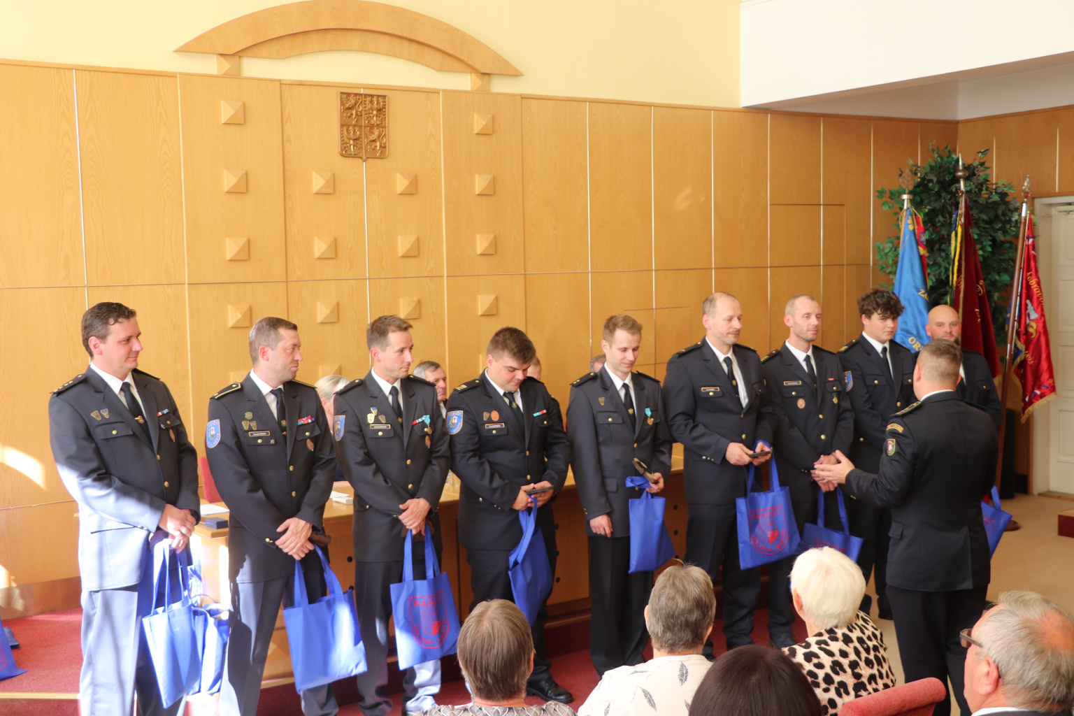 Odpoledne proběhlo v obřadní síni historické radnice slavnostní setkání současných i bývalých členů, přátel a příznivců sboru. Velitel Petr Durčák společně se starostou dobrovolných hasičů Danielem Sztwiertniou předali ocenění a poděkovali nejen členům, ale také dlouhodobým podporovatelům.