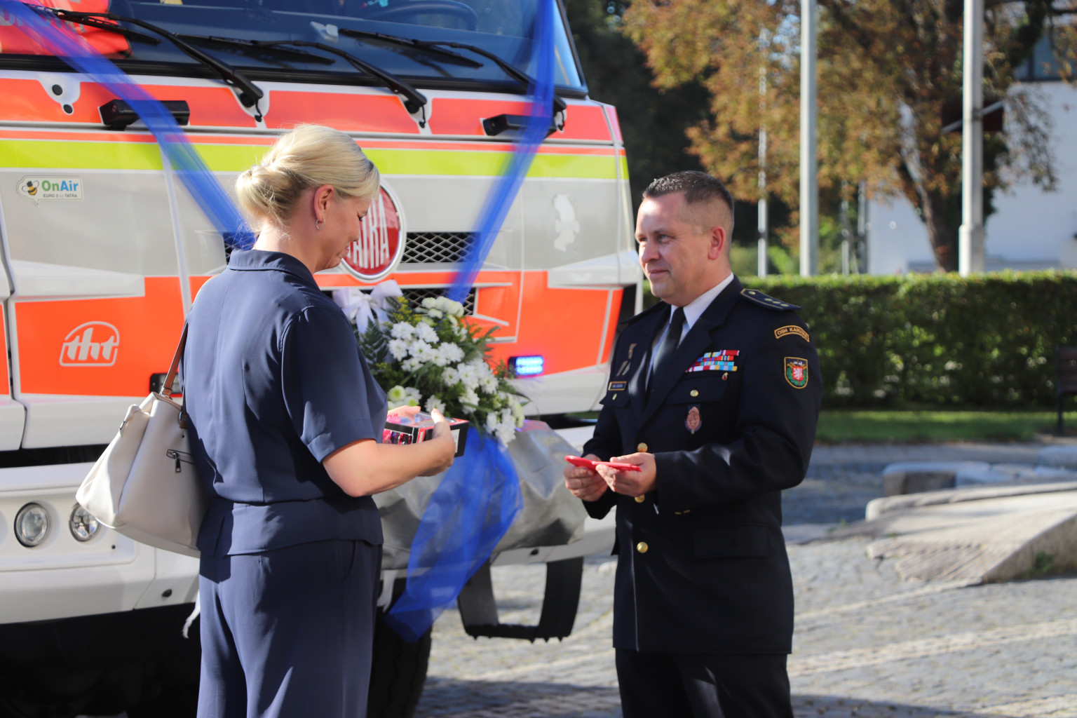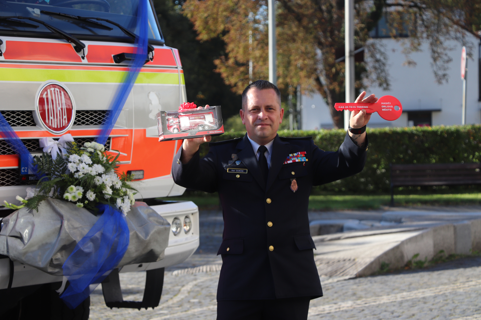 K oslavám nechyběl ani vzácný dar. Dobrovolňáci se mohou nově pyšnit speciální požární Tatrou, kterou město získalo bezúplatným převodem od HZS Moravskoslezského kraje. Klíčky slavnostně předala starostka Lenka Brzyszkowská veliteli Petru Durčákovi.