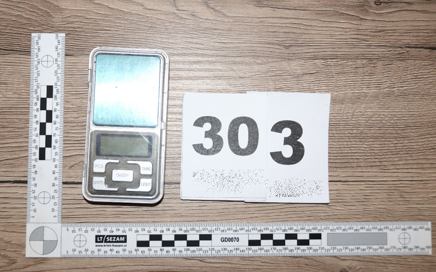„Při domovních a dalších prohlídkách policisté zajistili přes 100 gramů sušené rostlinné hmoty, krystalickou látku v různých dózách a sáčcích, jejíž celková hmotnost přesáhla 1 200 gramů, větší počet různých tablet, skleněnky a digitální váhy,“ dodala mluvčí. Dále policie zajistila několik mobilů, SIM karet, počítač, tablet, herní konzoli, hotovost v různých měnách a plynovou pistoli s náboji.