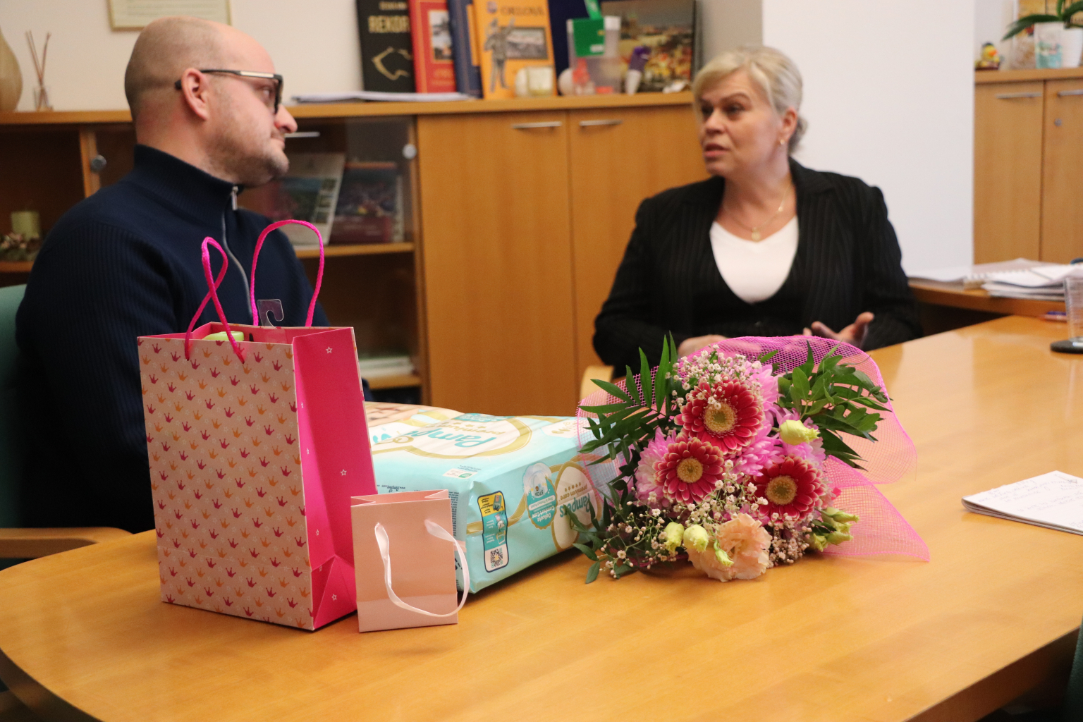 S rodiči si popovídala starostka Lenka Brzyszkowská a byla to opravdu milá návštěva. Stellinka všechno pozorovala a působila naprosto spokojeně. Stejně jako její rodiče. Mladou rodinu jsme obdarovali praktickými dárky. Stellince bude její prvenství navždy připomínat zlatý čtyřlístek.