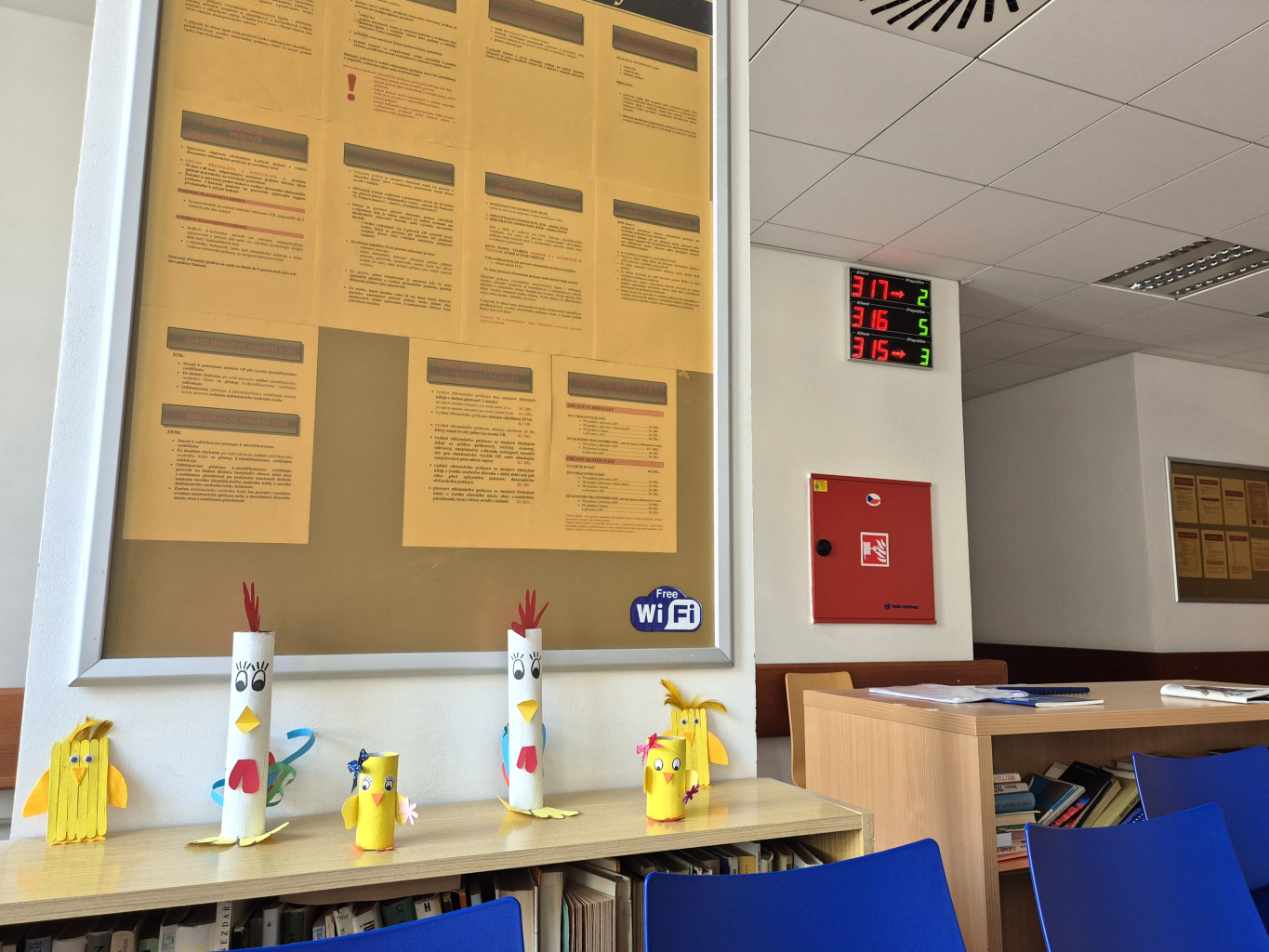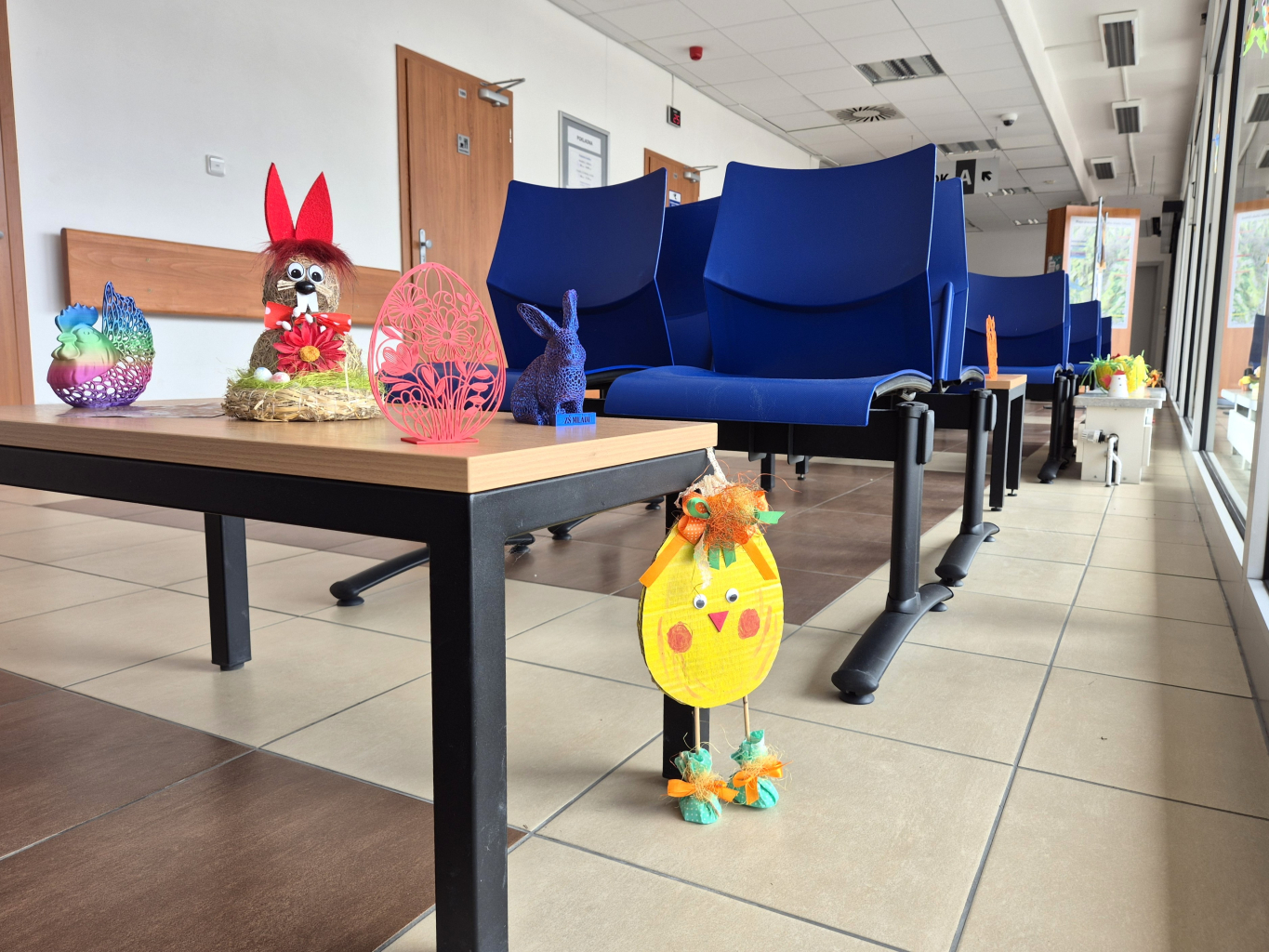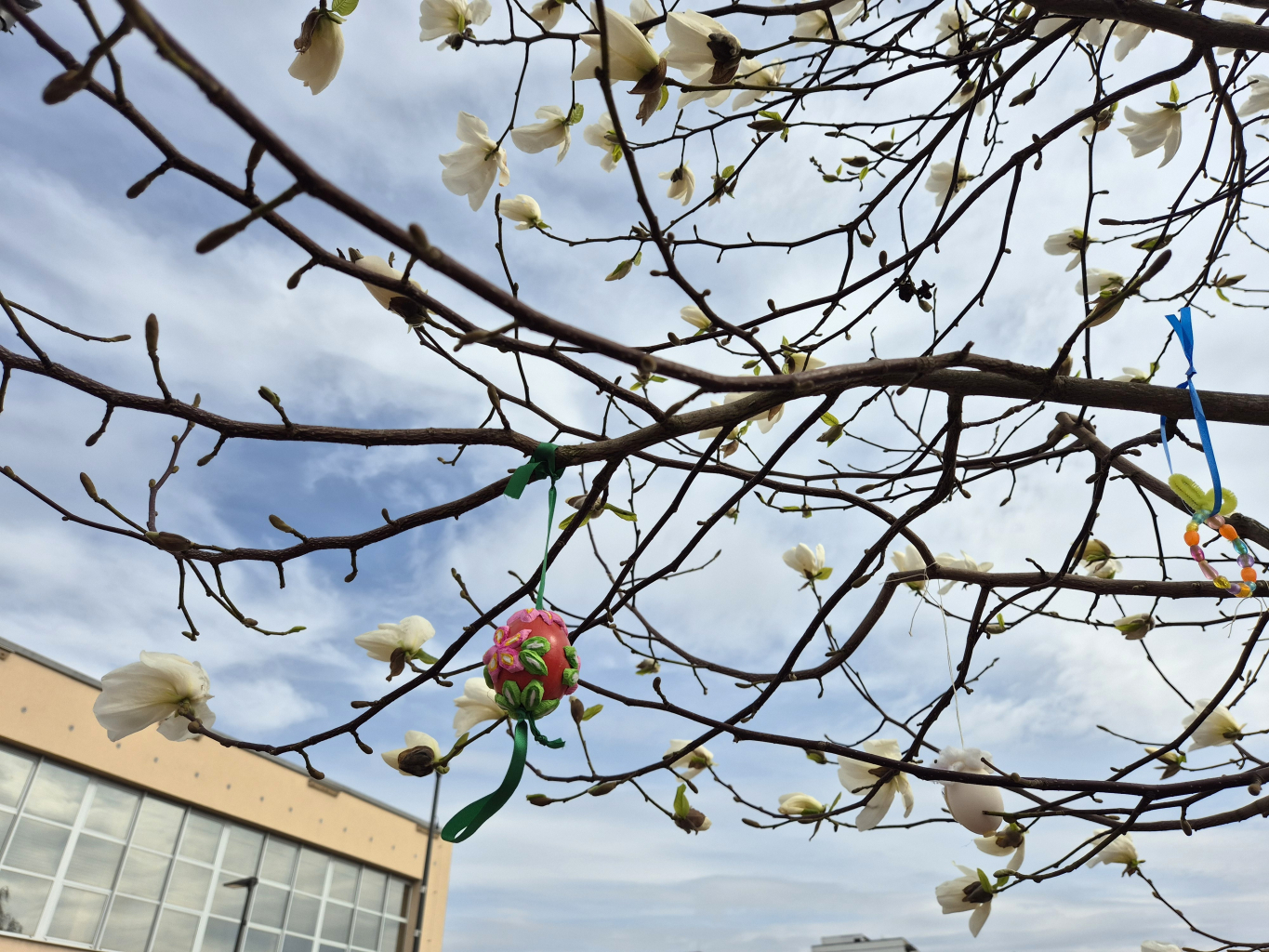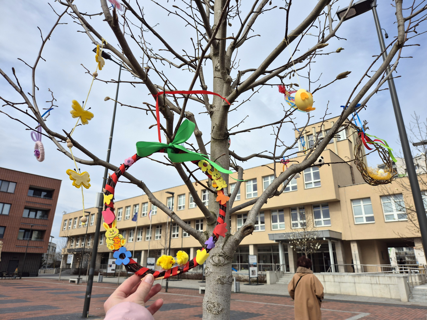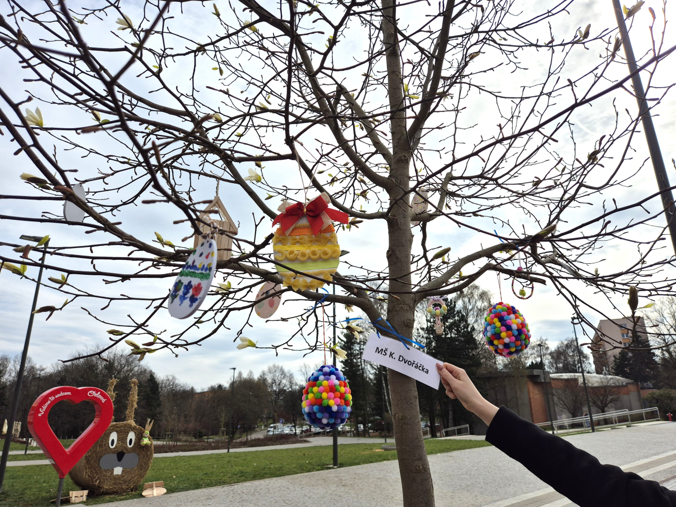 Na náměstí 28. října trůní zajíček s mládětem a japonské magnólie zdobí výrobky dětí z orlovských základních a mateřských škol. Výrobky školáků a předškoláků zkrášlily také prostory městského úřadu.