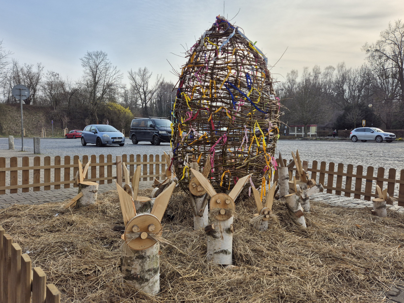 Na Starém náměstí pak najdete pletené vejce obklopené dřevěnými ušáky, které vyrobili skauti. O celkový estetický dojem se postarala sousedská komunita z Orlové-Města.