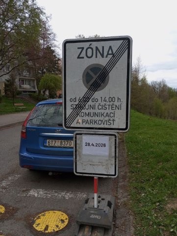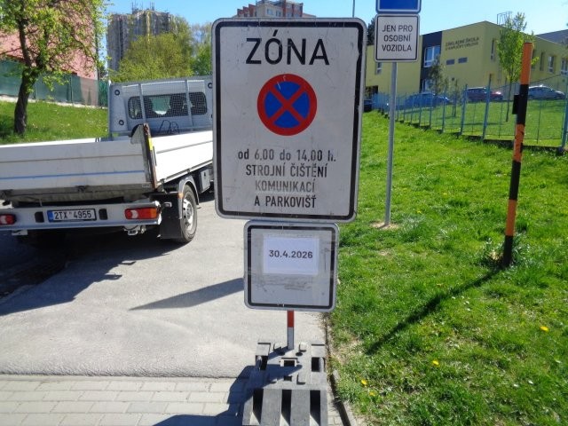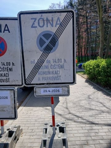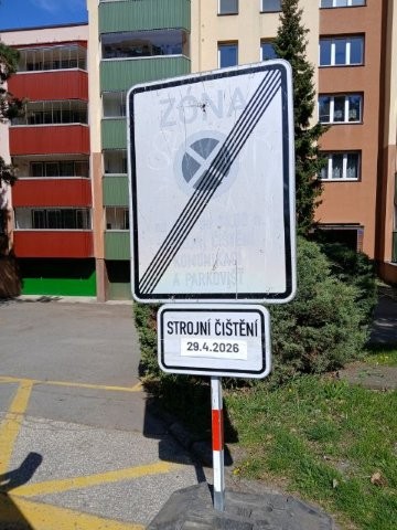 Připomínáme, že tam, kde je umístěna značka „ZÓNA“ se zákazem stání nebo zastavení, platí, že čištěny jsou všechny komunikace a parkoviště v této zóně, včetně těch po stranách, až po značku konec zóny.