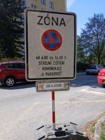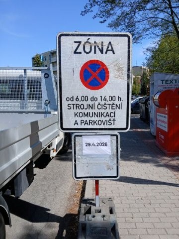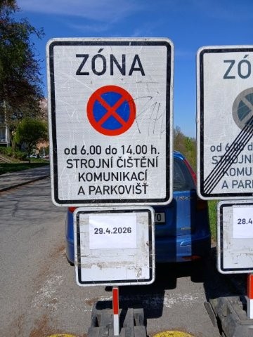Strojní čištění probíhá od 6 do 14 hodin. Prosíme řidiče, aby v tuto dobu respektovali zákaz zastavení v označených lokalitách.